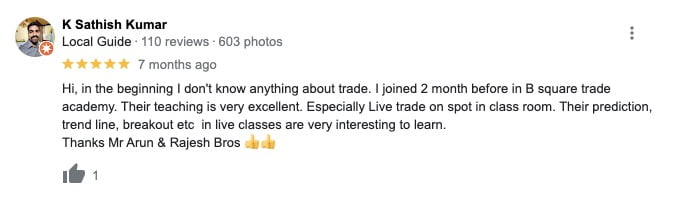 Welcome to B Square Trade Academy (NISM CERTIFIED ACADEMY) in Chennai, the world’s premier Price Action Share Market Training Academy. We provide live market strategies and comprehensive training for beginners and advanced traders, focusing on analyzing actual price movements to make trading decisions.